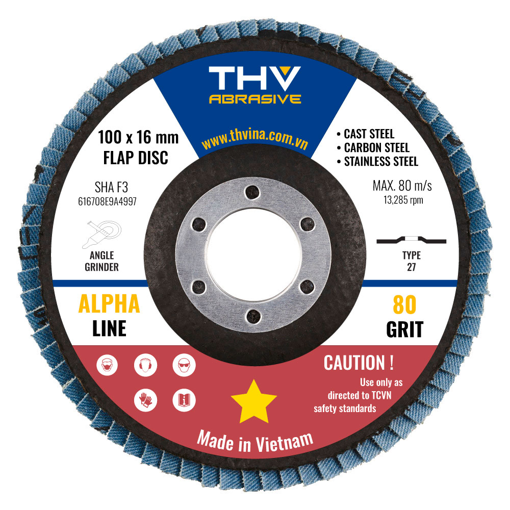 SHA F3 là dòng nhám xếp hạt Zirconium, hiệu suất cao, phù hợp để mài các vật liệu thép đúc, inox, thép carbon. Phần đế được sử dụng vật liệu sợi thủy tinh gia cường rất chắc chắn, giúp sản phẩm chịu được lực tỳ mạnh. Hạt nhám được làm từ hạt Zirconium độ cứng cao, có khả năng tự tạo lưỡi cắt, giúp hiệu suất cắt cao hơn, nhanh hơn và bền hơn.